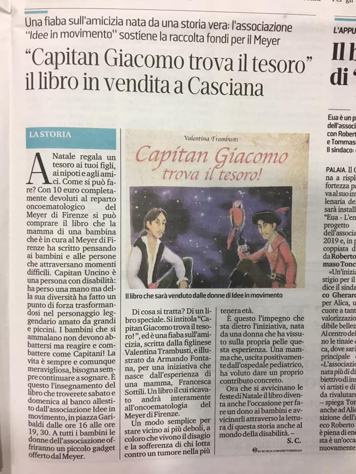 A Natale regale un tesoro: promozione e vendita del libro Capitan Giacomo trova il tesoro. Incasso completamente devoluto al reparto di oncoematologia dell ospedale Meyer di Firenze.